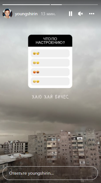 Блогер Шырын Нарчаева в сториз в Instagram поделилась фотографией с большой чёрной тучей: