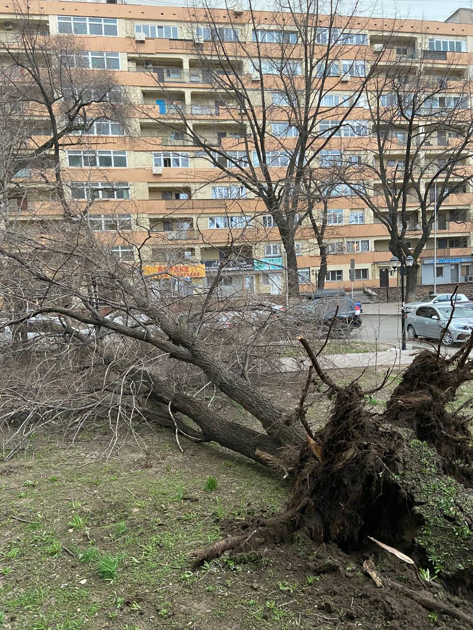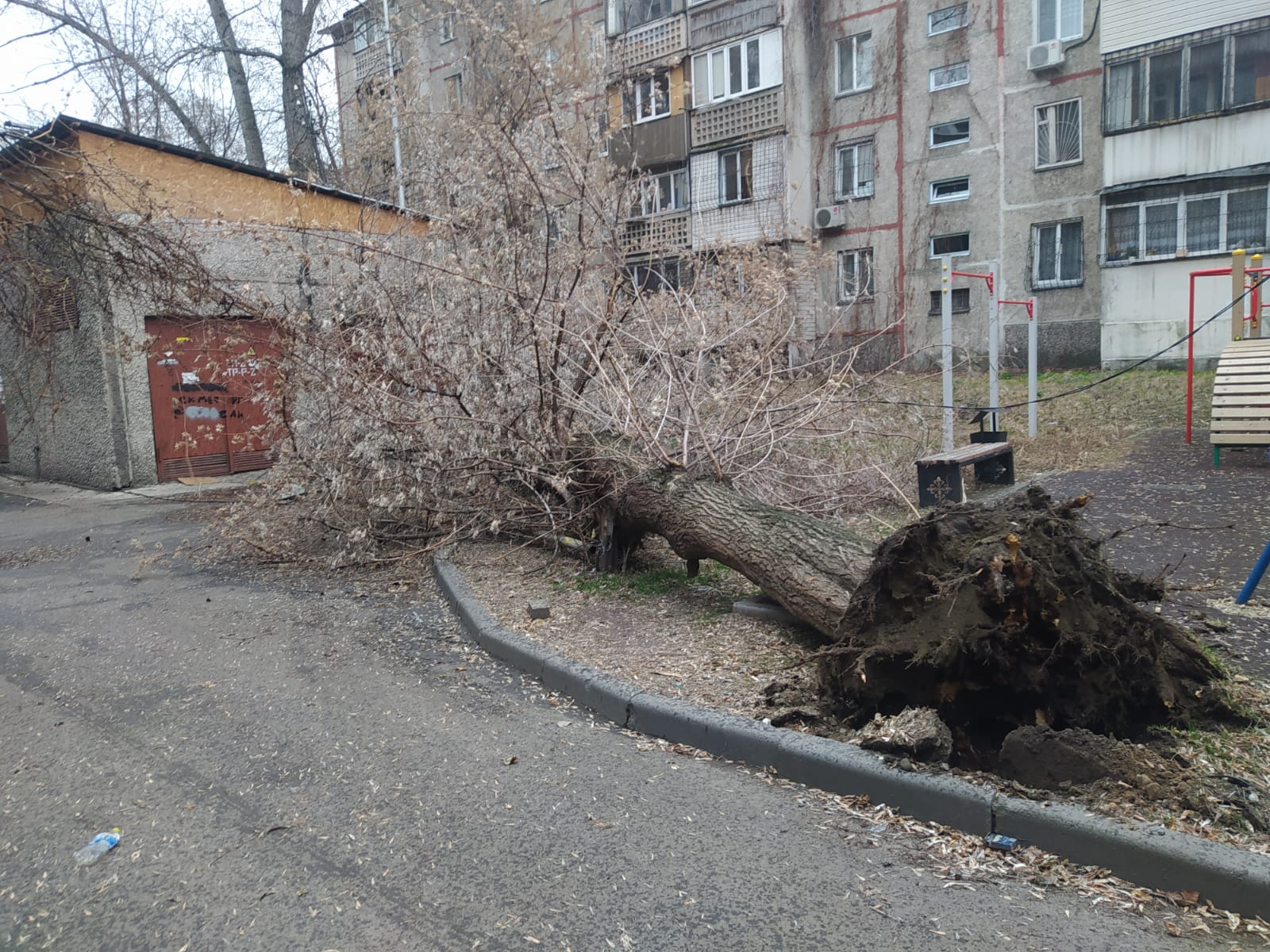 В алматинском дворе на Карасай-батыра/Муратбаева упало дерево на стоянку для четырёх машин. Пострадавших нет.