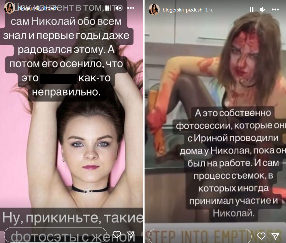 Позже, как говорится далее, к Николаю пришло осознание неправильности происходящего, и он заподозрил Ирину в измене с Арсеном. Также показана фотосессия, в которой Ирина предстает с топором и в брызгах крови.