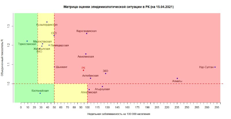 В "желтой зоне" — Восточно-Казахстанская, Жамбылская, Кызылординская, Павлодарская, Северо-Казахстанская, Мангистауская области.