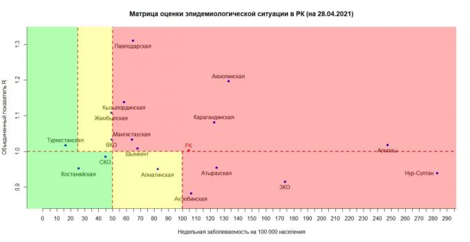 — В "красной" зоне: гг. Нур-Султан, Алматы, Шымкент и Акмолинская, Атырауская, Актюбинская, Западно-Казахстанская, Карагандинская, Кызылординская, Мангистауская, Павлодарская области.
