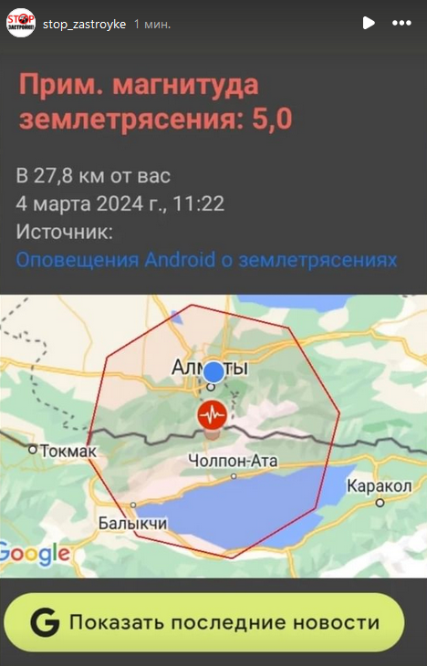 Напомним, ранее землетрясение произошло в 280 км от Алматы.