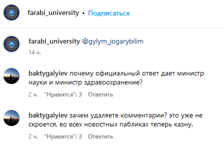 Университет назвал организацию, которая опубликовала личные данные студенток, и предварительно назвал сотрудников, которые могут быть виновны в произошедшем. Кроме того, контракт КазНУ с медицинским центром теперь под вопросом — речь идет о расторжении договора на оказание услуг, что, скорее всего, и произойдет, так как организация скомпрометировала себя, а заодно и крупнейший вуз страны.