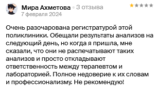 Проблемы клиники могут оказаться серьезнее, если после расторжения госконтрактов ей придется возвращаться на комерческий рынок. Отзывы в 2gis выглядят не очень хорошо, в них много негатива, причем вызванного разнообразными причинами. Таким образом, перспективы учреждения сложно назвать радужными.