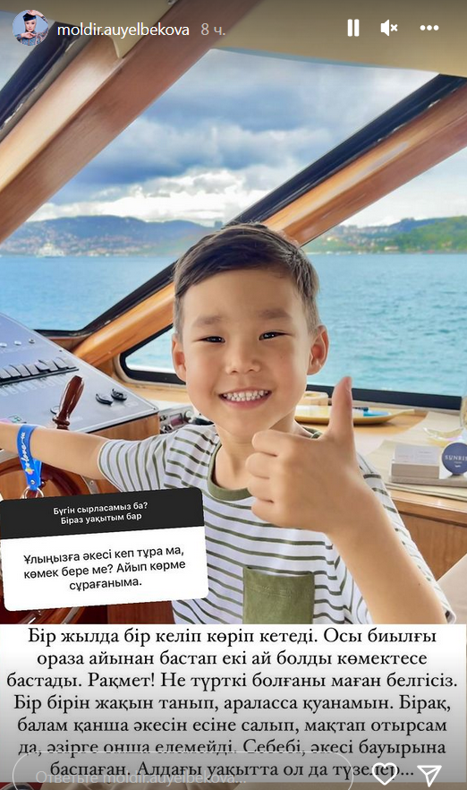 Про отношения мальчика с отцом спросила подписчица Молдир, передает Сaravan.kz. Артистка довольно подробно ответила на вопрос о бывшем муже.