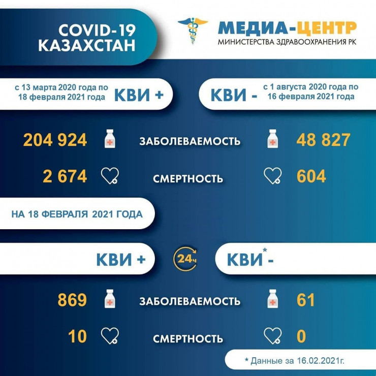 На 18 февраля лечение от коронавируса продолжают получать 21 994 человека (13 644 КВИ+ и 8 350 КВИ-), из них в стационарах находятся 4 900 пациентов, продолжают лечение на дому 17 094 пациента, передает Caravan.kz со ссылкой на пресс-службу Министерства здравоохранения.