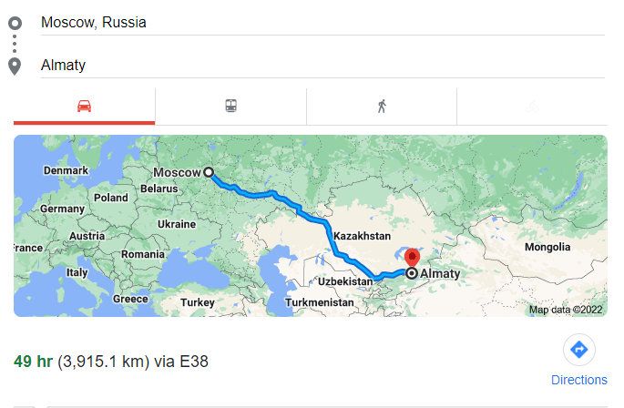 Таким образом, улететь раньше, чем через четыре дня, не представляется возможным, однако можно попробовать добраться на машине. На расстояние около 4 тыс. километров, если машина расходует по 7 литров бензина на 100 км, уйдёт 280 литров топлива, так что на бензине АИ-95 при средней стоимости, как в России, на дорогу уйдёт около 111 тыс. тенге (230 долларов).