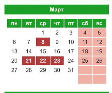 Кроме того, при пятидневной рабочей неделе предстоит 8 дней отдыха в субботу и воскресенье и 4 дня – при шестидневной