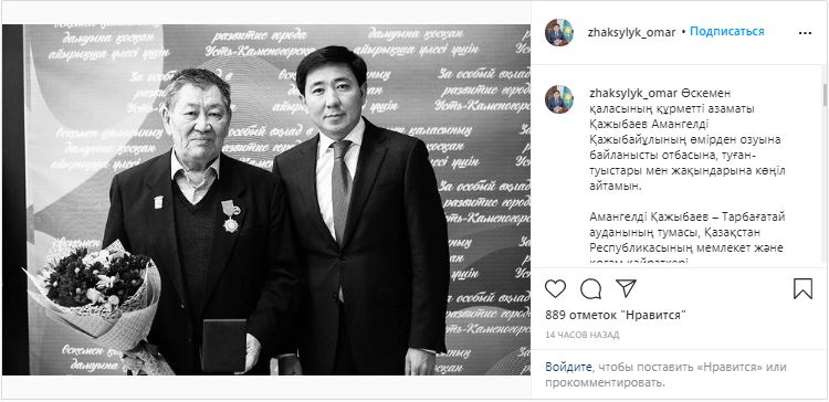 — С прискорбием сообщаю о кончине почетного гражданина нашего города Кажыбаева Амангельды Кажыбаевича. Амангельды Кажыбаев – уроженец Тарбагатайского района, государственный и общественный деятель Республики Казахстан. В свое время был акимом Усть-Каменогорска и Семея, а также заместитель акима Восточно-Казахстанской области. Выражаю самые искренние и глубокие соболезнования родным и близким, — написал Жаксылык Омар в Instagram.
