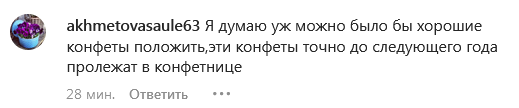 Есть и такой вариант. В комментариях отметили, что такой же подарок вручили работникам банка второго уровня. Большинство похвалило выбор организации, отметив, что такие сладости дети точно съедят с удовольствием.