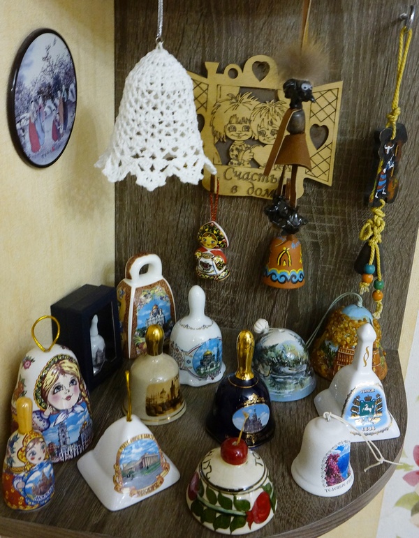 Есть из Тулы в виде пряничной матрешки, из Гусь-Хрустального – в форме перевернутой хрустальной рюмки. Один, украшенный казахским орнаментом, она привезла из Алматы. Другой, вылепленный из глины в образе скомороха, увидела на ярмарке мастеров в Усть-Каменогорске. Есть колокольчики-дуэты, которые подходят друг другу и звенят созвучно. Есть солисты, ни на кого не похожие и с оригинальным индивидуальным голосом.