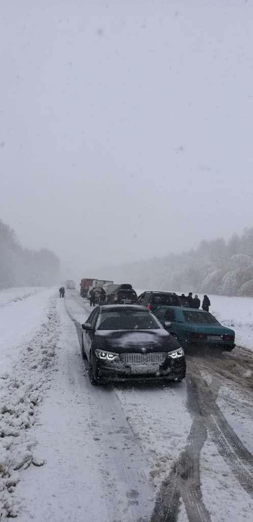 Утром 8 октября на трассе собралось порядка 40 автомобилей, к 11.30 их было уже около 100, в обоих направлениях.