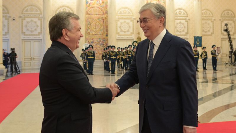 Переговорам предшествовала официальная церемония встречи во дворце Акорда. После того как начальник роты почетного караула отдал приветственный рапорт президентам, прозвучали государственные гимны двух стран. Касым-Жомарт Токаев и Шавкат Мирзиёев совершили обход почетного караула. Затем в Восточном зале состоялась встреча в узком составе.