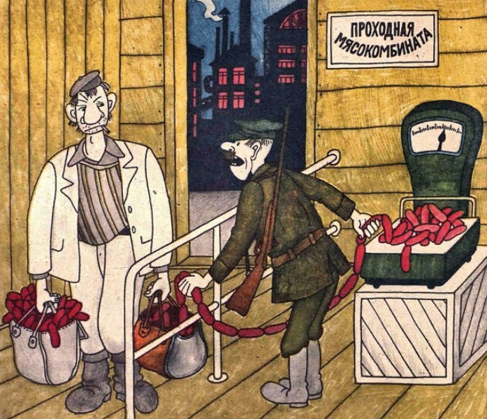 «Имеющиеся в Министерстве охраны общественного порядка СССР данные свидетельствуют о неблагополучном положении с сохранностью социалистической собственности на многих мясоперерабатывающих предприятиях страны. Систематически совершаемыми там хищениями и злоупотреблениями ежегодно наносится государству значительный материальный ущерб. Лишь за 9 месяцев 1966 года на предприятиях и организациях мясомолочной промышленности РСФСР, Украинской, Казахской, Грузинской и Азербайджанской СССР убытки от растрат, хищений и недостач достигли 1 миллиона 765 тысяч рублей. В 1966 году только органами милиции некоторых краев и областей Российской Федерации, Украинской, Белорусской, Казахской, Латвийской, Эстонской и Литовской ССР разоблачено на мясоперерабатывающих предприятиях около тысячи групп расхитителей. К уголовной ответственности привлечено более 3 тысяч человек. Нанесенный ими ущерб государству превышает 500 тысяч рублей. Кроме того, за этот же период в Казахстанской, Украинской, Белорусской, Эстонской ССР, Краснодарском и Ставропольском краях работниками охраны было задержано при выносе похищенного с предприятий около 10 тысяч человек, у которых изъято более 75 тонн различных мясопродуктов общей стоимостью свыше 150 тысяч рублей", – говорится в документе.