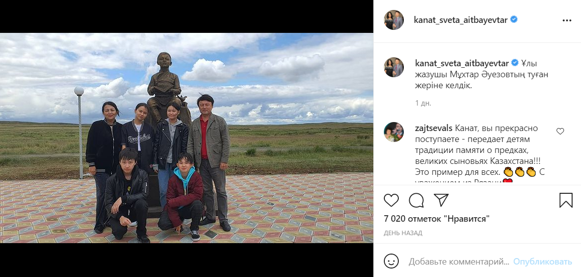 После приезда г-н Айтбаев поспешил обрадовать подписчиков, что они благополучно прибыли на родину казахского писателя и поэта Мухтара Ауэзова.