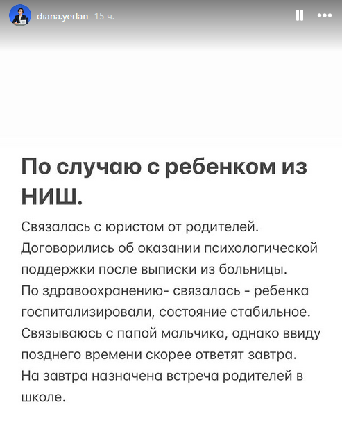 Детский омбудсмен по Алматы сообщила, что подросток был госпитализирован.