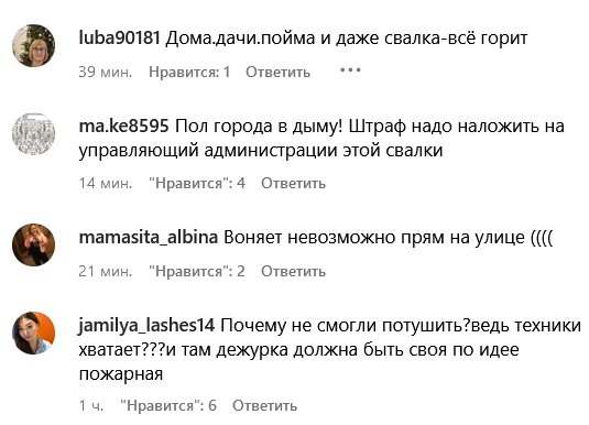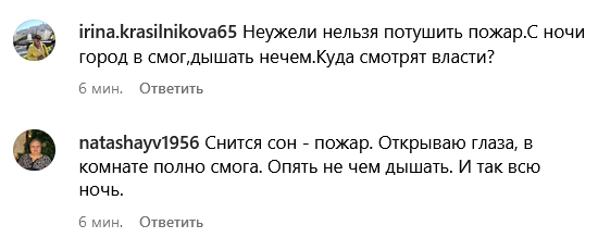 Однако жители города пишут, что дышать все еще неприятно даже в помещениях, и жалуются на бездействие пожарных.