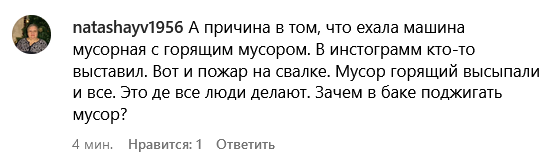 Сообщается, что причиной пожара стала выгрузка на свалку горящего мусора.