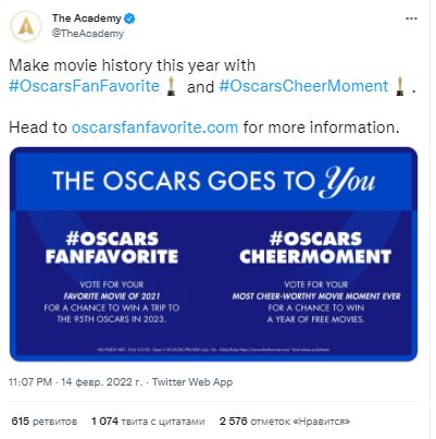 Также организаторы премии решили добавить в мероприятие нововведения и создали дополнительную "номинацию". Так, пользователям Twitter предложили голосовать за любимый фильм, набравшая большее количество упоминаний картина будет объявлена на церемонии.