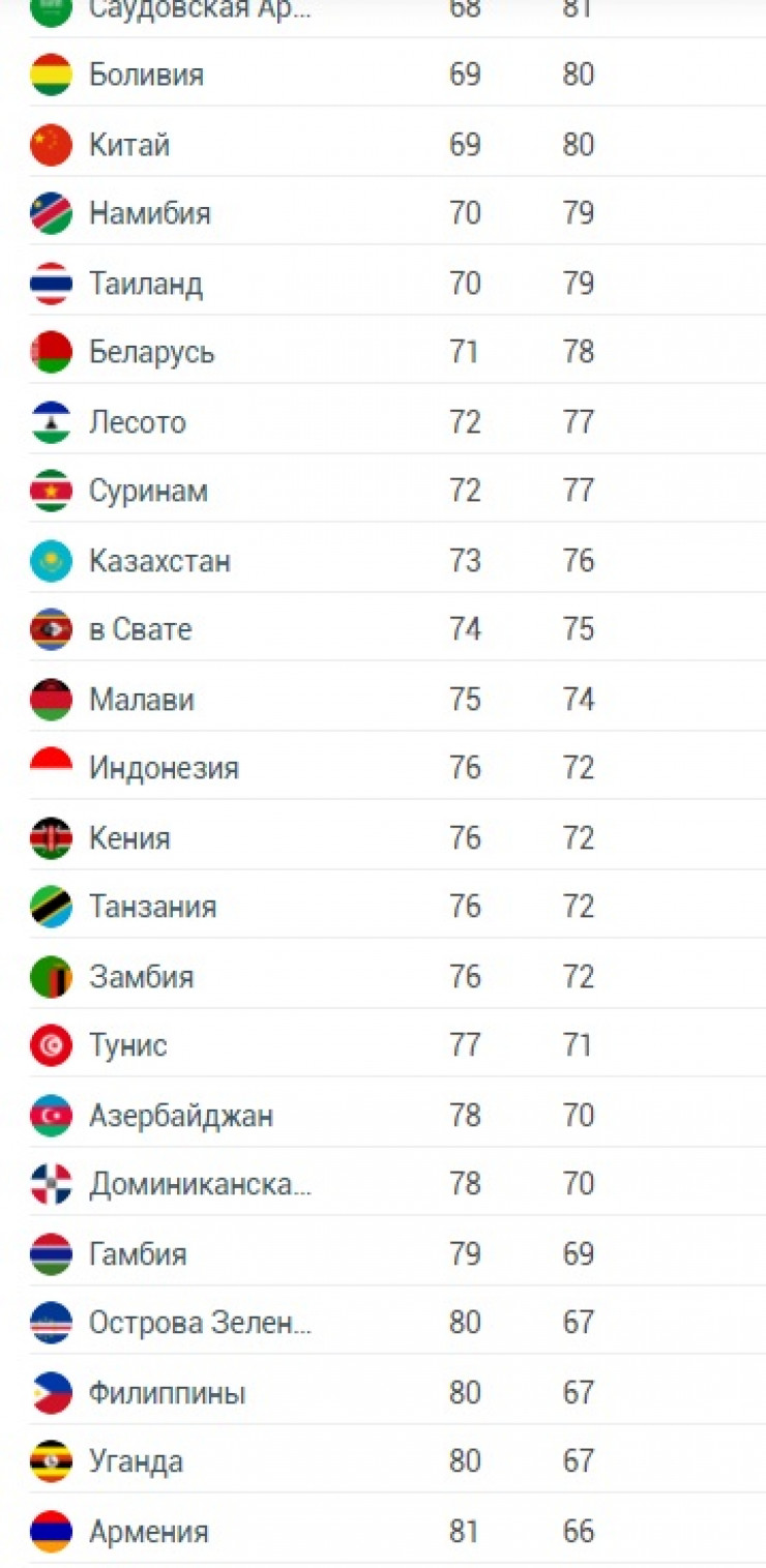 Согласно рейтингу Henley & Partners, Казахстан в 2022 году занял 73-е место, предложив гражданам безвизовый въезд в 76 стран. Годом ранее страна была на 75-м месте. А в 2020 году — на 67-м.