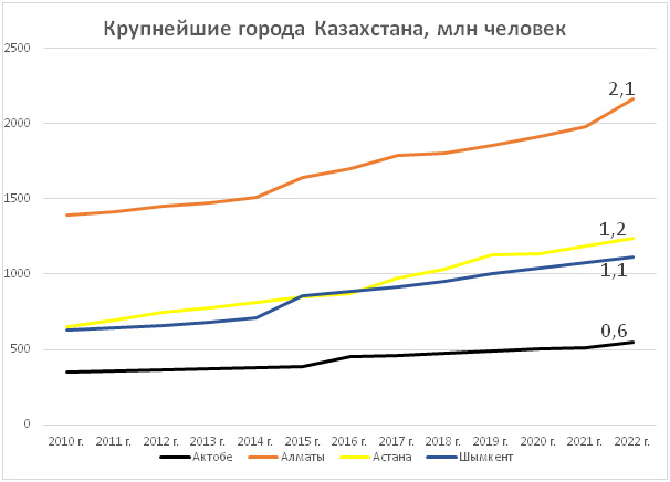 Казахстан переживает бурную урбанизацию. Буквально за 13 лет население страны выросло с 16 до 20 млн человек.