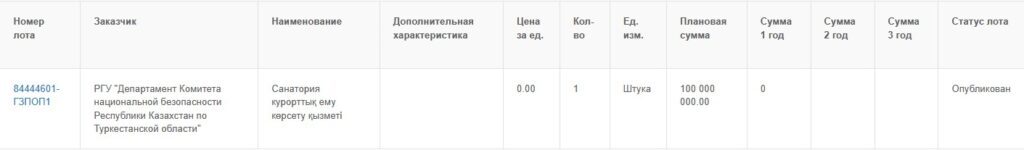 Департамент КНБ по региону закупает услуги санаторно-курортного отдыха сразу на 100 миллионов тенге.