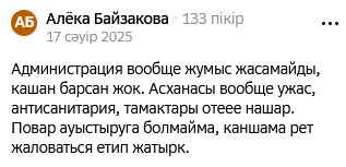 «Администрация вообще не работает, как ни придешь — их нет. Столовая вообще ужас, антисанитария, еда очень плохая. Неужели нельзя заменить повара, мы столько жаловались».