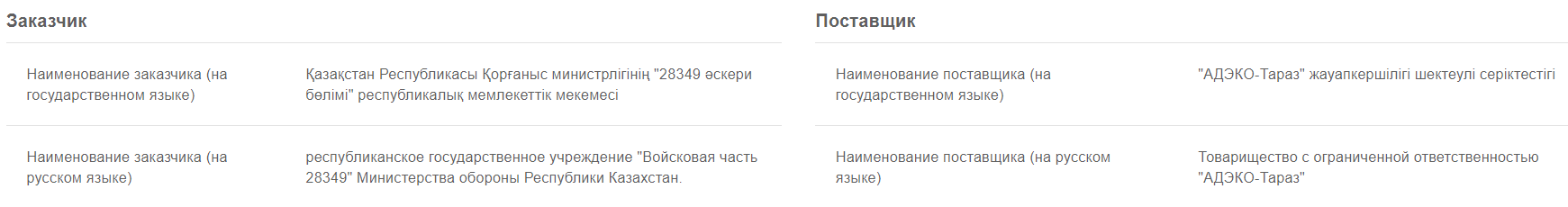 Стоит отметить, что, по информации сайта госзакупок, в этой войсковой части не проводились многомиллионные тендеры, которые вызывали бы ряд противоречий. Самый крупный розыгрыш за 2021 год заключался в приобретении услуг по "страхованию ответственности за нанесение вреда экологии". На эти нужды было выделено 1 440 998 тенге.