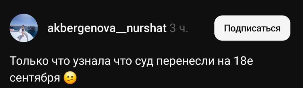 «Только что узнала, что суд перенесли на 18 сентября», — написала она в социальной сети Threads.