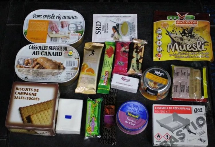 Сухпаёк французского солдата, судя по отзывам, признан самым вкусным в мире. Ещё бы. Тут есть маринованные улитки, сырное и шоколадное фондю, мясо в винном соусе и несколько видов десертов. Вот только 2 200 калорий для голодного солдата это маловато.