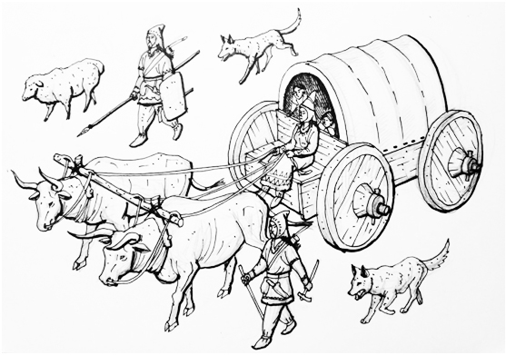 Племена этих культур первыми овладели технологиями колесного транспорта и стали мобильными. Они переезжали с места на место вместе со своими семьями и утварью в поисках новых пастбищ, полей, охотничьих и рыболовных угодий. Для этой цели они использовали большие тяжелые крытые телеги с колесами без спиц, сделанными из сплошного дерева, которые тащили за собой мощные быки. Повозки эти были неуклюжими и медленными, но тем не менее они обеспечили своих владельцам достаточно мобильности, чтобы начать активно расселяться по Великой Степи и за ее пределами. Также они первые в Евразии одомашнили дикую лошадь. Сначала лошадей держали только для мяса и молока, но позднее начали понемногу учиться на них ездить.