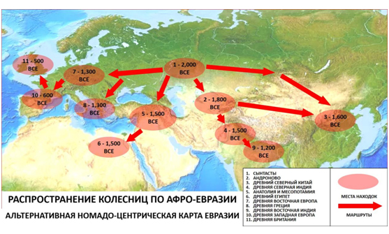 Улучшение и удешевление технологий изготовления и техники применения колесниц вело ко все большему распространению колесниц в Великой Степи и за ее пределами. С Урала колесницы попали сперва в Центральную и Восточную Степи, а потом уже в Европу, Иран, Египет, Элладу, Междуречье и Индию.