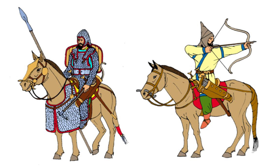 Воины Степи были вооружены короткими и мощными скорострельными конными луками, железными мечами, топорами и копьями с железными наконечниками, их тела и тела их лошадей защищали железные чешуйчатые доспехи. Они могли невероятно быстро перемещаться большими отрядами и на огромные расстояния, внезапно появляясь там, где их не ждали, и осыпая своих врагов тучами стрел, прежде чем нанести им мощный кавалерийский удар.