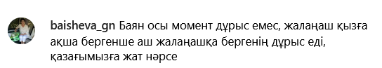 Во время одной из поездок к столику Алагузовых подошла полуобнаженная девушка и начала танцевать рядом с Турсенгали Алагузовым, передает медиа-портал Сaravan.kz. Другой гость сказал Турсенгали, чтобы он дал девушке денег, а Баян добавила: "Не жадничайте" и подбадривала мужа возгласами, пока он засовывал купюру в бюстгальтер танцовщицы. Та сказала: "Спасибо" и продолжила выступать.