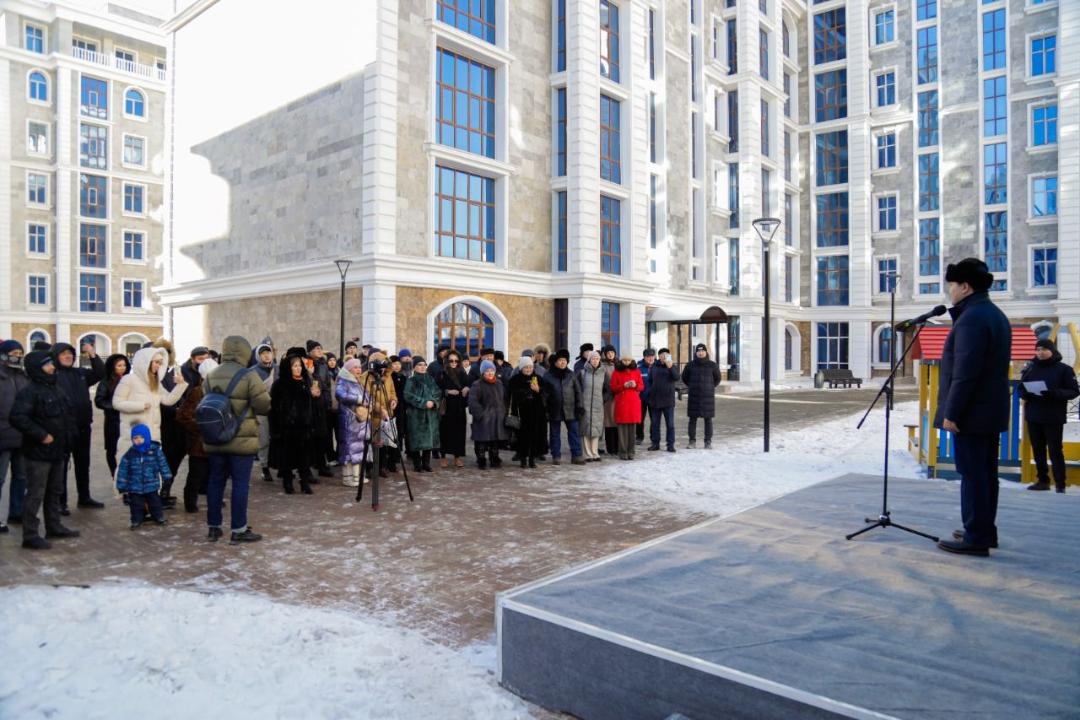 «Друзья! Как вы знаете, перед нами стоит задача завершить долгострои города. Ранее акиматом из 150 многоквартирных жилых комплексов-долгостроев было завершено строительство 120 ЖК. Тысячи семей смогли заехать в свои долгожданные квартиры.
