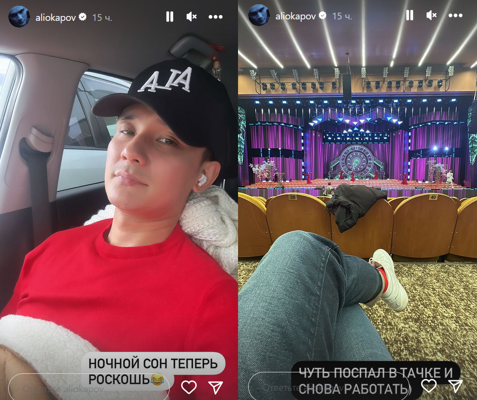 "Ночной сон теперь роскошь. Чуть поспал в тачке — и снова работать", — поделился он в сториз.