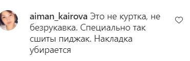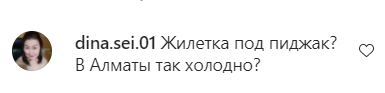 "Жилетка под пиджак? В Алматы так холодно?", "Куртка под пиджаком", "Это не куртка, не безрукавка. Специально так сшит пиджак. Накладка убирается", — обсуждают комментаторы внешний вид Турсена Алагузова под публикацией продюсера.