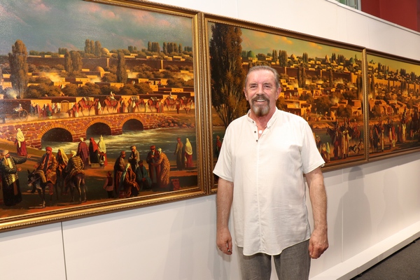 – Две тройные картины “Тараз – город купцов” и “Средневековый базар”, – говорит Сергей Пожарский. – Там много деталей, людей, зданий… Писал их пять лет с перерывами на командировки.