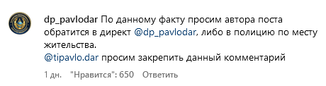 В ситуацию вмешался департамент полиции, который попросил автора публикации обратиться в правоохранительные органы.