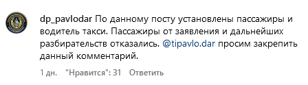 Потом я замечаю, что он едет за нами, на светофоре встал в соседнем ряду. Когда увидел, что я его хочу сфотографировать, отвернулся и уехал. Писала, звонила в таксопарк, описывала жалобу, но спустя сутки никто не ответил мне, не знаю, как ещё предупредить граждан», — написала испуганная пассажирка.