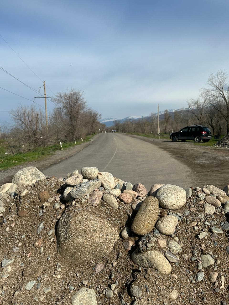 Корреспондент Caravan.kz не смогла проехать по талгарской трассе из-за каменного заграждения.