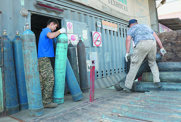 – В прошлом году у нас здесь были очереди по 50–60 человек. Мы ограничили продажу: по одному в руки. Группа из 4 парней заходила, брала четыре 10-литровых баллона, грузила их в машину – и снова в очередь. Так и скупили все наши баллоны, – рассказывает технический директор компании Мухтар ИГИСИНОВ. – Потом находили наше оборудование на сайтах продажи по 120, по 200 тысяч тенге. А у нас они тогда стоили 18–20 тысяч.