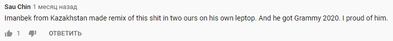 Напомним, ремикс Иманбека Зейкенова возглавил годовой чарт Billboard, а позднее был номинирован на престижную премию "Грэмми". Это первый случай в истории, когда номинантом стал наш соотечественник. Примечательно, что сам американец теперь убежден, что Иманбек заслуживает горы аплодисментов, так как его ремикс прославил и автора оригинальной композиции.