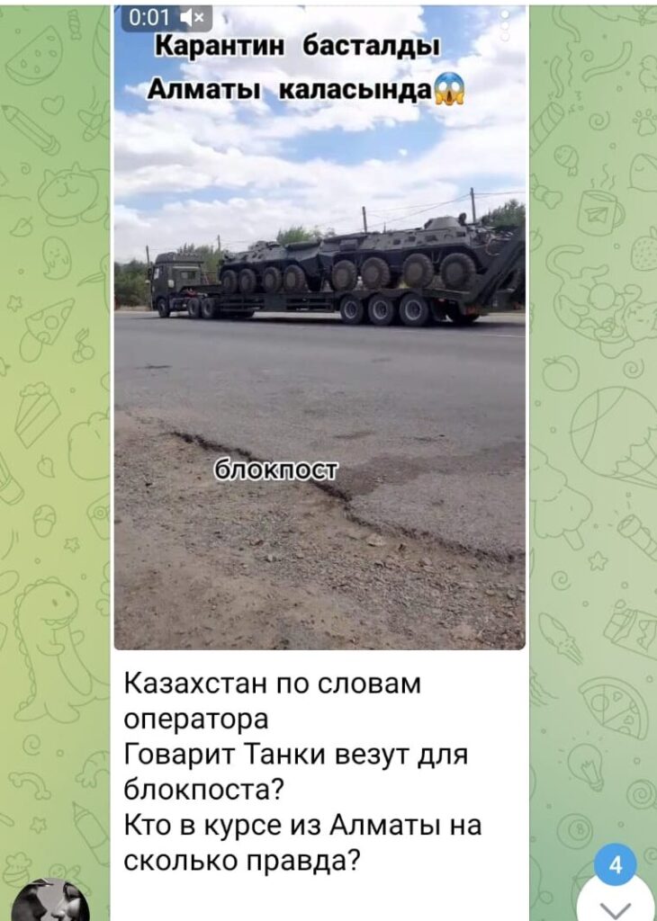 В настоящий момент блокпостов вокруг Алматы нет. Военная техника, попавшая на видео, к карантинным ограничениям никакого отношения не имеет.