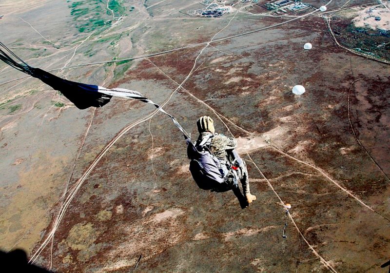 Что касается совершения прыжков, то в десантно-штурмовых войсках три вида парашютных систем – Д-5, Д-6 и "Беркут" предусмотрены для специальных подразделений. Многие офицеры и контрактники имеют более ста парашютных прыжков, свыше 600 человек – знак "Парашютист-отличник". В год военнослужащие совершают от трех до шести прыжков зимой и летом, на воду и в темное время суток, десантируются посадочным, штурмовым способами, на фалах. Интенсивность зависит от погоды и авиации. Все соединения и части десантно-штурмовых войск входят в состав ОДКБ.
