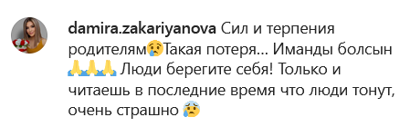 "С родителями поехали на пикник на Иртыш. Уехали далеко и находились в необорудованном для купания месте, где сильное течение. Отец девушки жарил шашлыки, когда услышал крики. Он пытался спасти свою дочь, но уже течением унесло", — сообщил и.о. начальника отдела по чрезвычайным ситуациям Иртышского района Павлодарской области Азамат Нургожин.