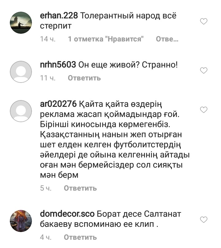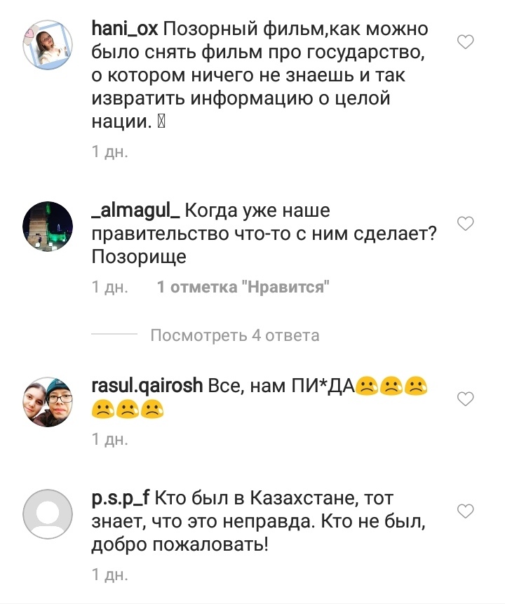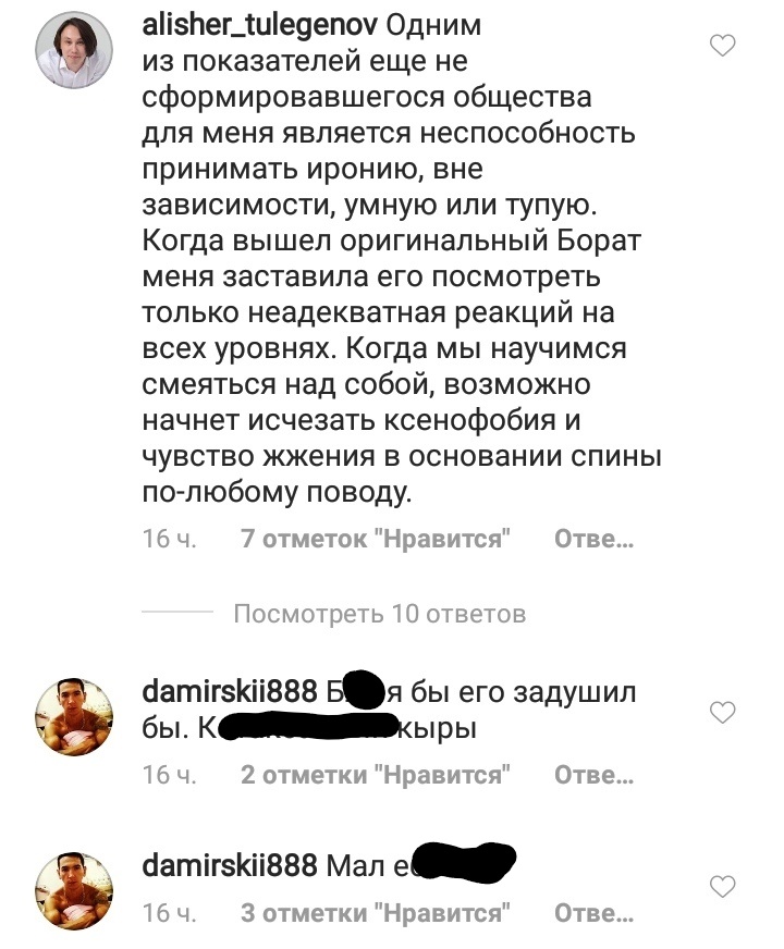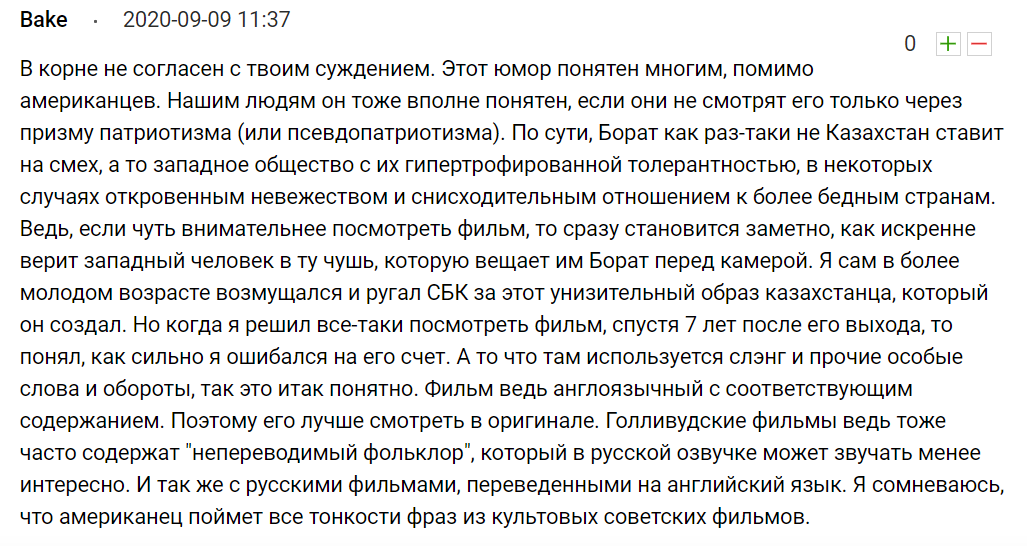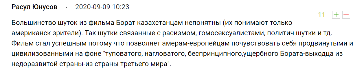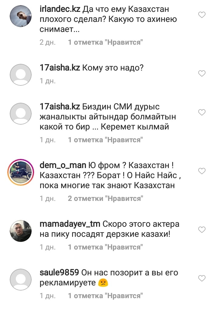 Один из комментаторов посоветовал Саше Барону Коэну не приплетать к своему творчеству Казахстан, а снимать кино про свою страну.