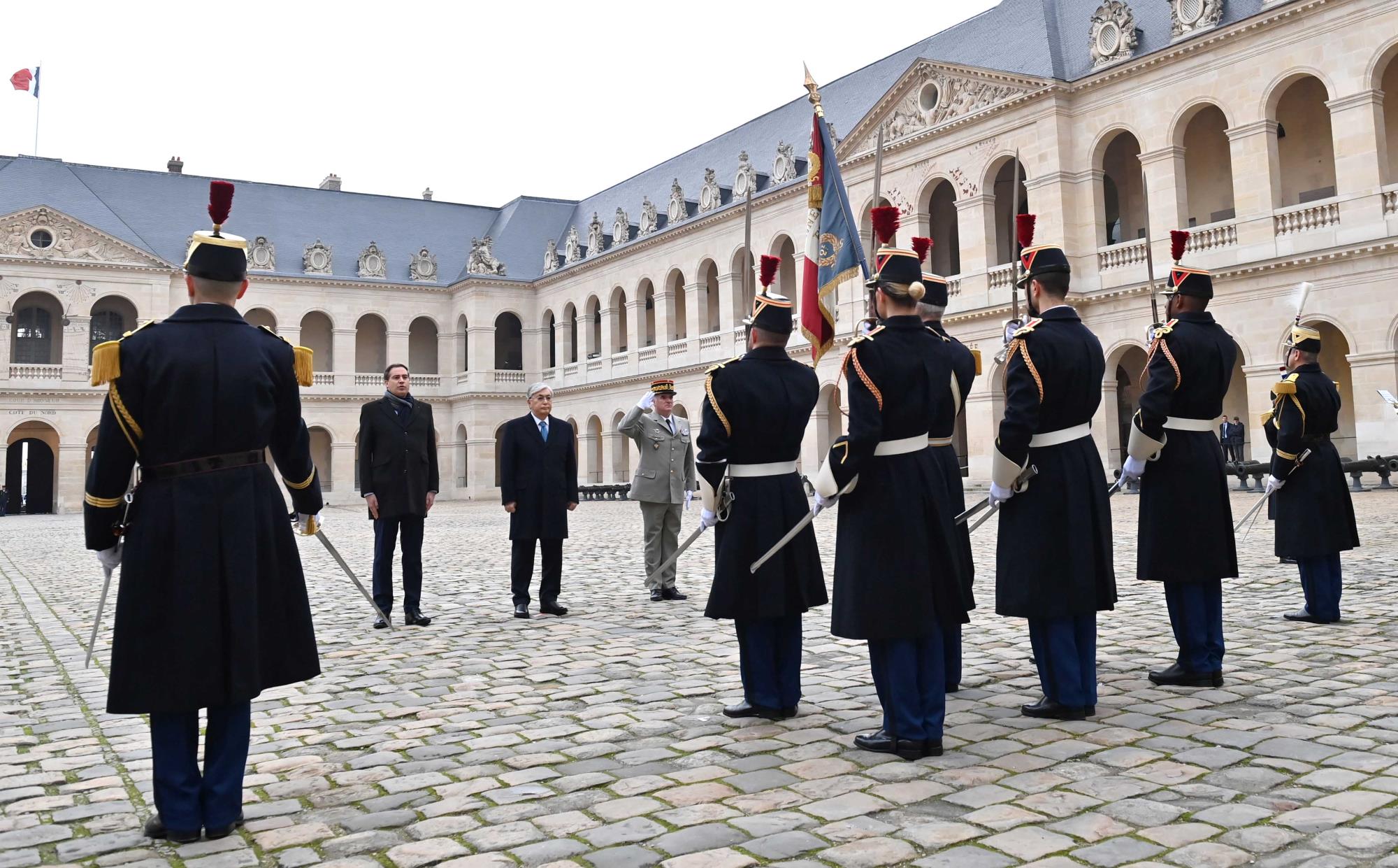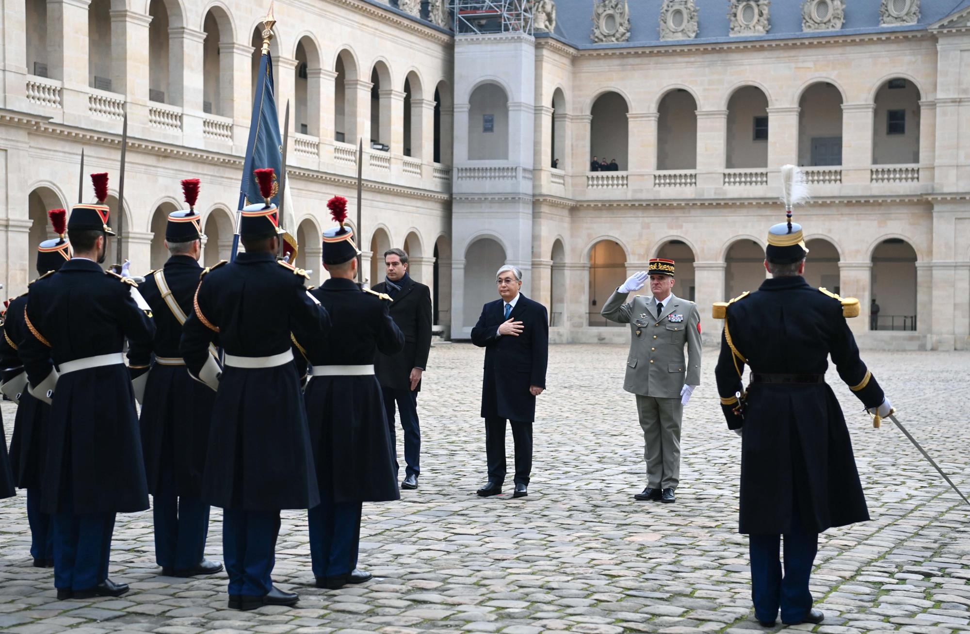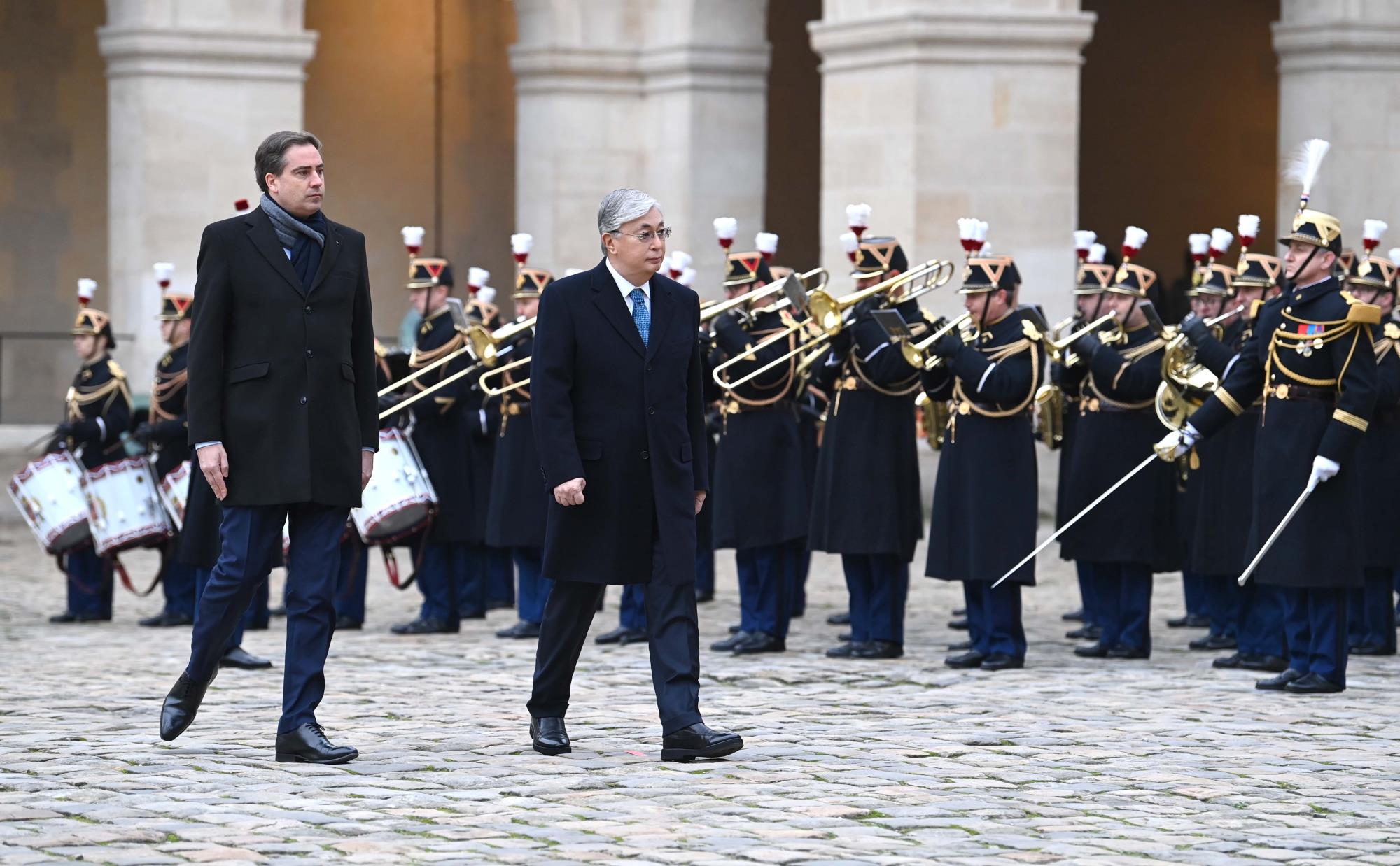 В начале церемонии Глава государства поприветствовал флаг Французской Республики, военный оркестр исполнил государственные гимны двух стран, сообщает Акорда.