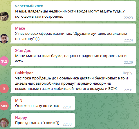 "Это ЭКО-транспорт? Трафик, как на Абая. В нашей стране правила не для всех, всем нельзя, а вот им можно. Для тех, кто не понял, дорога на Шымбулак открыта только для ЭКО-транспорта. Но у нас всегда есть блатные, которым закон не писан," — написала блогерша.