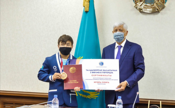 Аким Алматинской области встретился с бронзовыми призерами летних Олимпийских игр в Токио — трехкратной чемпионкой мира по тяжелой атлетике Зульфией Чиншанло и тяжелоатлетом Игорем Соном, сообщает Tengrinews.kz.
